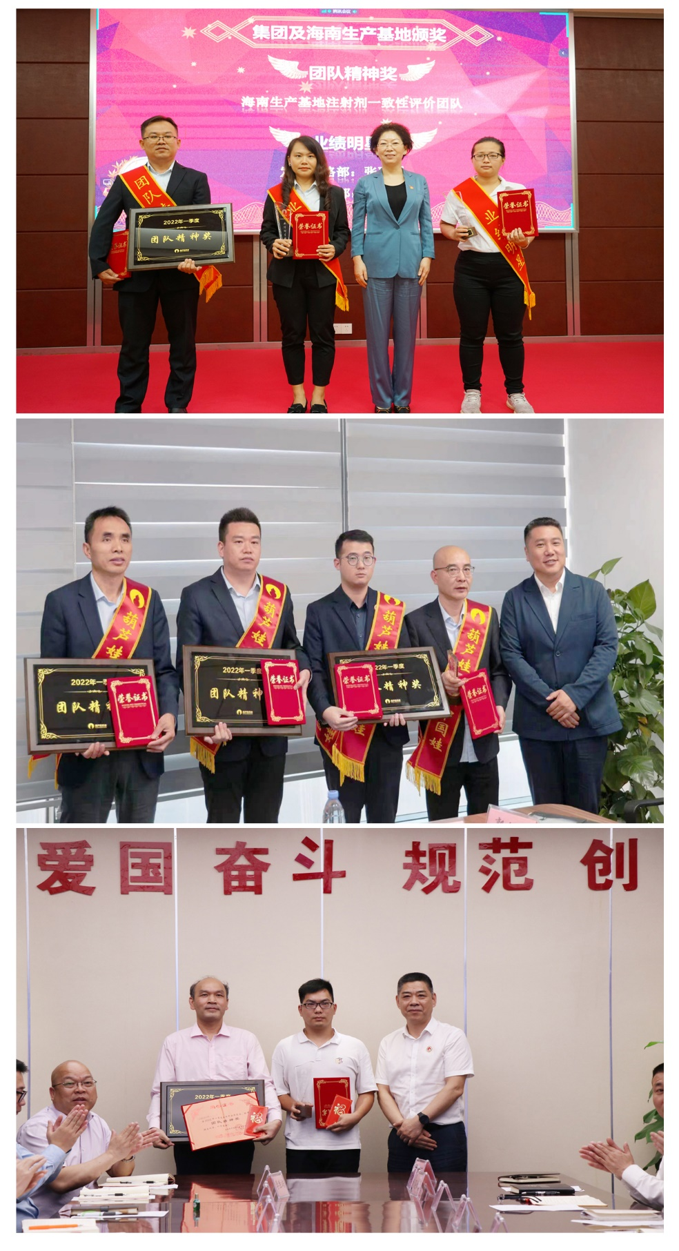 为了表彰在2022年一季度“深化变革,赢得开门红”工作中“超额完成计划、超出本职工作或超越组织预期”的先进集体和优秀个人,会议期间还举行了AG贵宾会药业集团2022年一季度“开门红”表彰颁奖仪式。营销中心葫芦世家事业部湖南区域主管黄子杰等12人荣获业绩明星奖,葫芦世家事业部等5个集体荣获团队精神奖。
